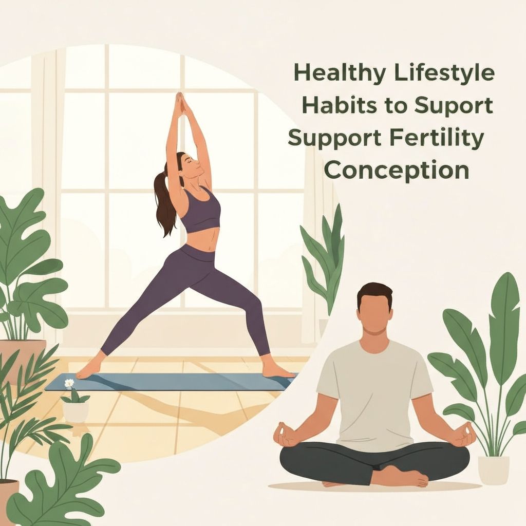 Illustration representing healthy lifestyle practices that support fertility and reproductive health.