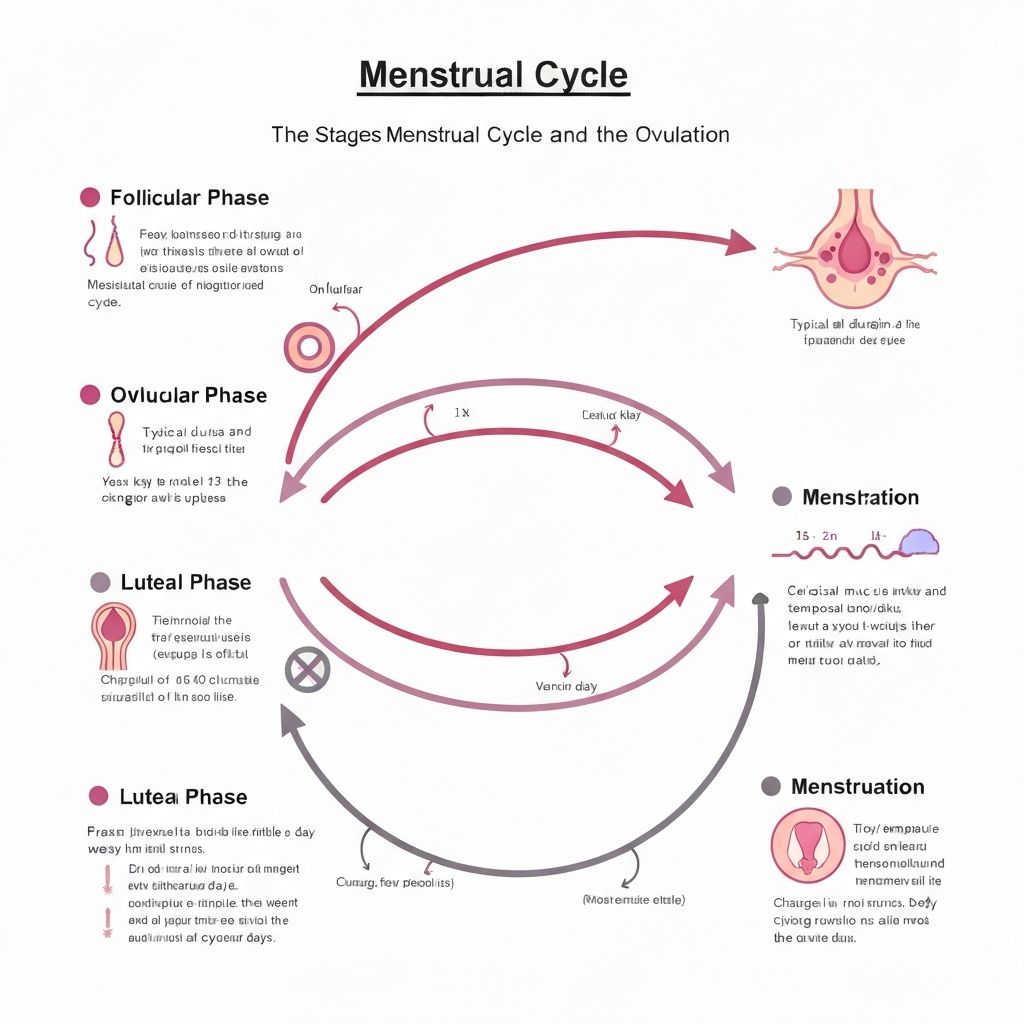Your menstrual cycle is divided into four distinct phases, each with its own hormonal patterns and body changes. Understanding these phases helps you recognize your body's natural rhythm and better predict your fertile window.