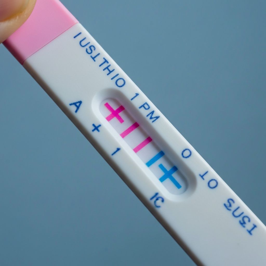 OPK test strip demonstrating positive result indicating LH surge and imminent ovulation.