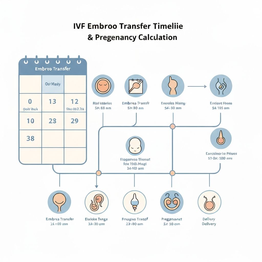 In vitro fertilization (IVF) dating uses the embryo transfer date to calculate the pregnancy due date. The calculation differs slightly depending on whether a 3-day or 5-day embryo transfer occurred. For 3-day transfers, 266 days are added to the transfer date, while 5-day (blastocyst) transfers add 261 days. IVF dating methods often provide greater precision than LMP-based calculations because the exact developmental stage of the transferred embryo is known. This approach eliminates uncertainty from irregular cycles or unknown ovulation timing, making it particularly valuable for patients with fertility histories.